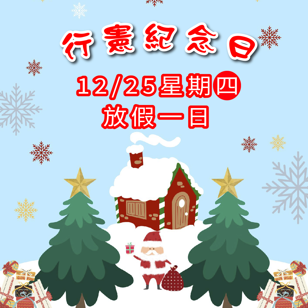 公告~行憲紀念日放假一天